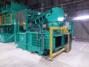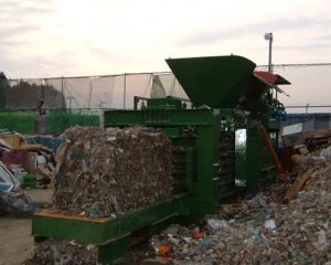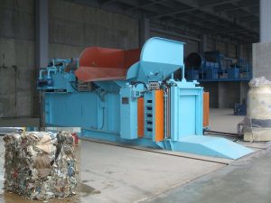 WB-53型産業廃棄物梱包機は処理能力が秀でており、37.5KWのモータをメインとし、結束は8番線もしくは10番線、5本掛け自動結束。