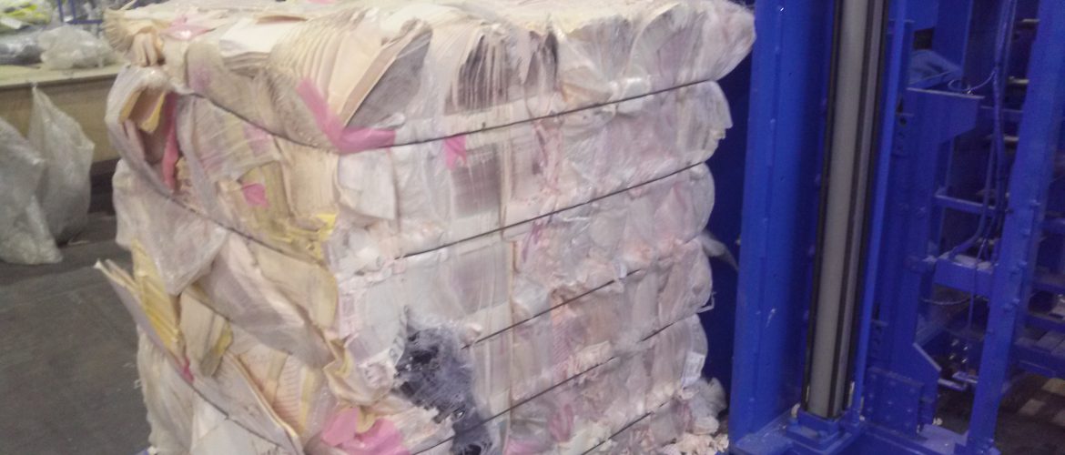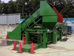 車のバンパーや、幅のある廃プラスチック類も、砕いて圧縮梱包が可能。